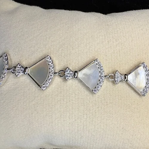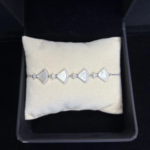 Each fan segment is joined by miniature diamond-studded connectors, enhancing the fluidity and flexibility of the bracelet while adding a luxe sparkle. Finished with an adjustable lobster clasp and extender chain—complete with a heart-shaped “925” tag—this bracelet ensures a perfect fit for all wrist sizes.